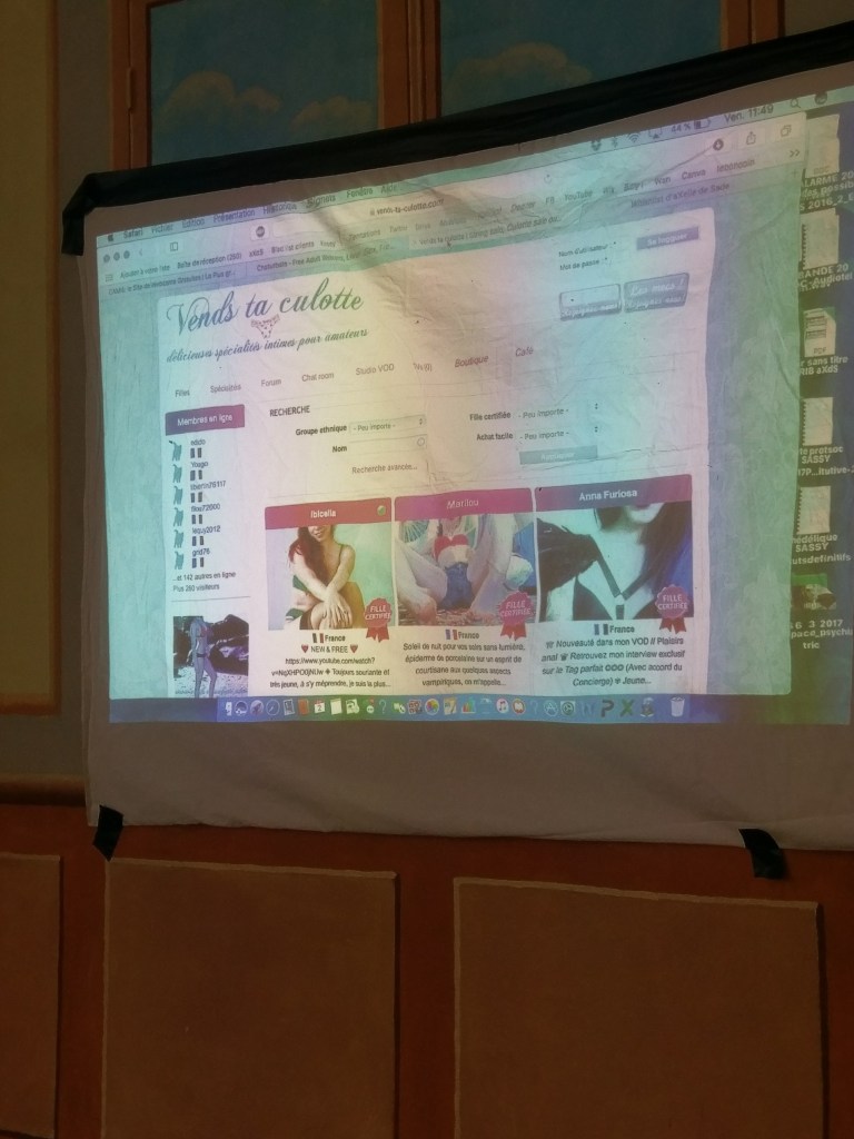 Un TGV plus tard, je suis à Marseille, pour les Putains de Rencontres. On m’a invitée à co-animer un atelier sur le sexe en ligne. Je dois donner des conseils à des travailleuses du sexe qui veulent tenter l’expérience du sexe en ligne. Je suis très étonnée que beaucoup de gens me reconnaissent sur place. Je suis accueillie par Marianne Chargois que j’ai connue au festival Explicit il y a 6 mois. Je recroise KAy rencontré à Berlin. L’atelier se déroule à merveille, j’ai l’impression que toutes les petites choses que j’ai apprises au cours de mes tribulations de camgirl sont enfin utiles. J’apprécie transmettre mon savoir, donner des conseils sur les choses à faire ou à éviter, etc. Je suis ravie.