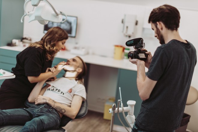 Tout d’abord, on a dû rechercher des informations dans la fiche technique de la chaise avec le dentiste, car on n’était pas sûrs qu’elle supporte le poids de deux personnes (et qu’elle coûtait 30 000 €, quand même). Il nous a expliqué comment la chaise marchait, et nous a donné des accessoires pour faire encore plus réaliste.